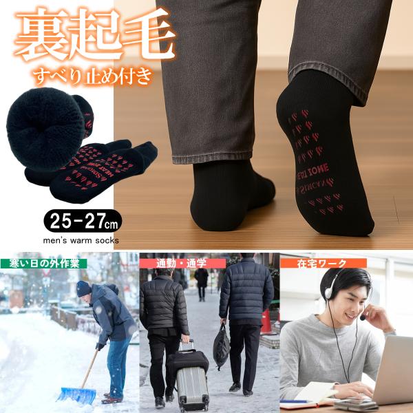 送料無料 超裏起毛 すべり止め付 靴下メンズ ソックスメンズ 25-27cm くつ下 厚手 厚地 ルームソックス あったか 暖かい靴下 締めつけない 防寒靴下 秋冬 防寒
