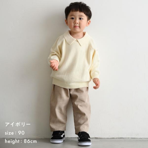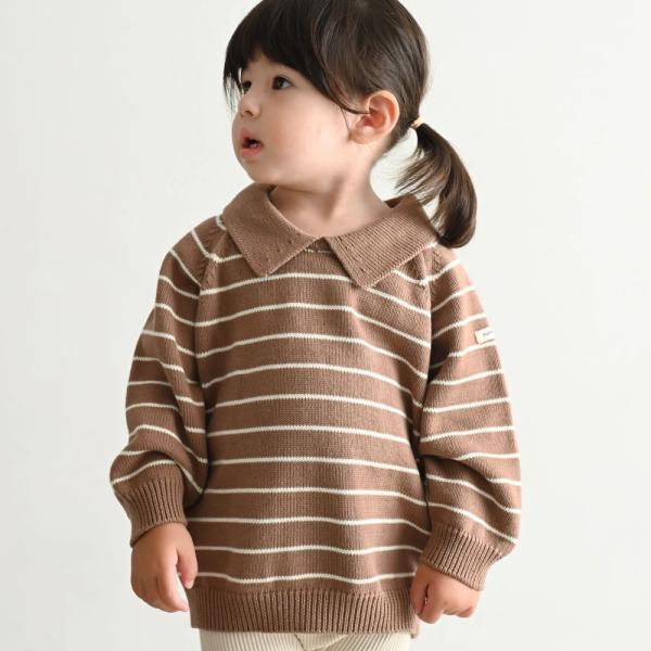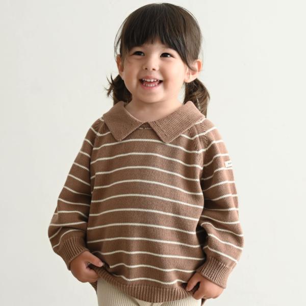 PUPPAPUPO 衿付き セーター ニット 無地 ボーダー シンプル キッズ ベビー トップス 秋 冬 長袖 おしゃれ 80 90 100 110 子供服 男の子 女の子 プッパプーポ
