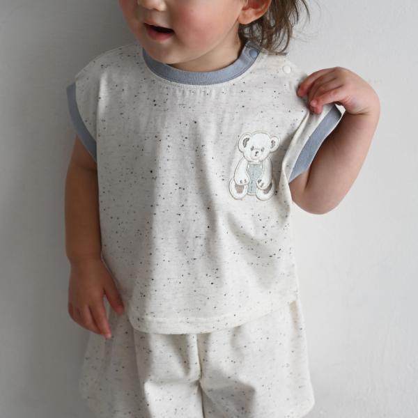 PUPPAPUPO セットアップノースリーブ ショートパンツ ネップ シンプル ズボン ベビー キッズ トップス 春 夏 80 90 100 110 子供服 男の子 女の子 プッパプーポ