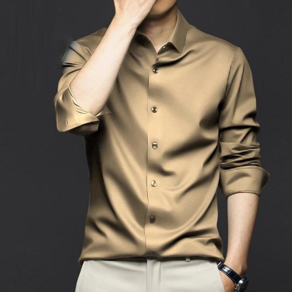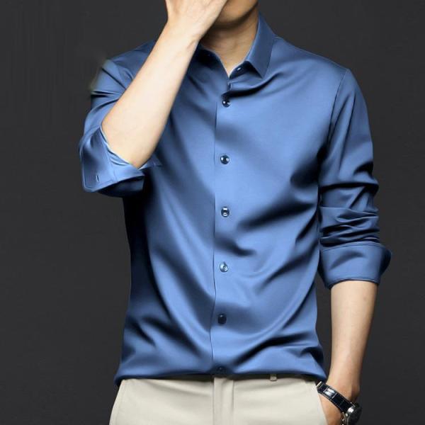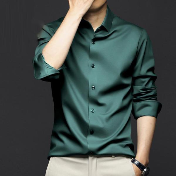 耐シワ性 Yシャツ 長袖 ノーアイロン 夏 春秋 ノーアイロン レギュラー メンズ 紳士服 おしゃれ 長袖シャツ 光沢感 アイスシルクシャツ
