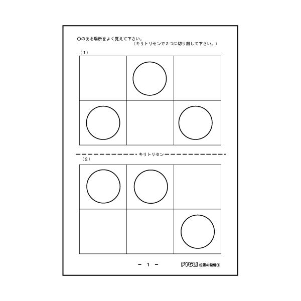 【使い方】○△×などが描かれたプリントをページごと切り離して、子供に10秒ほど見せます。それから、解答用のプリントを渡してとらえた形を描かせます。