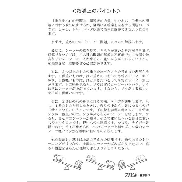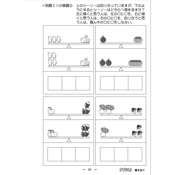 例えば2つの重さを比べるとき、ただシーソーの絵を見せても、「シーソーが傾いている方が重い」ということを理解できていなければ解答できません。