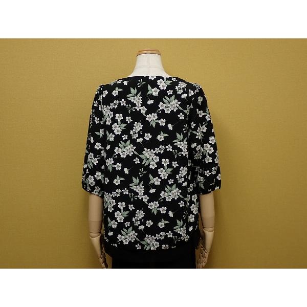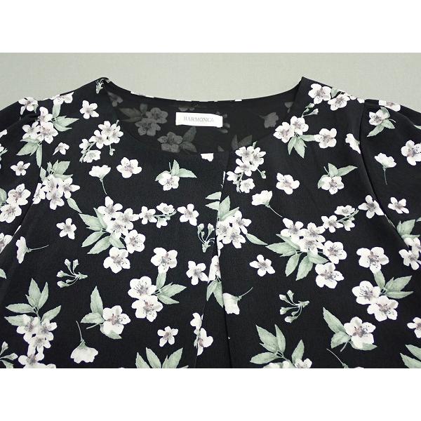 送料無料 HARMONICA シフォンブラウス・M▼ハーモニカ/7分袖/花柄/レディース/26弥4-22
