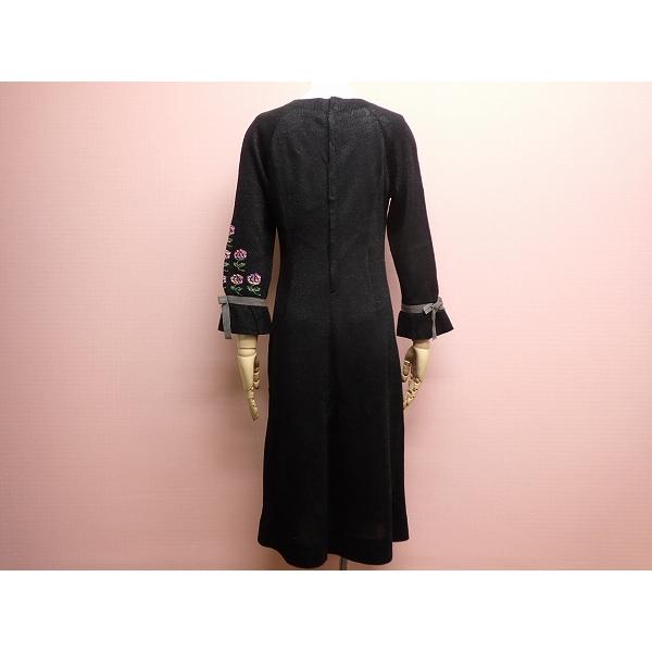 Saito Toyoko ニットワンピース△斎藤都世子 サイトウトヨコ/袖リボン/花/黒/レディース/@A1/26弥1-7