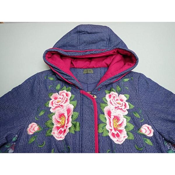 遊民 中綿コート・M〜L■花柄刺繍/和柄/フード付き/チャイナボタン/100サイズ/23*12*3-3
