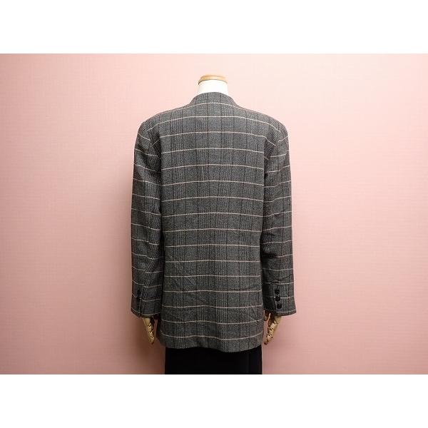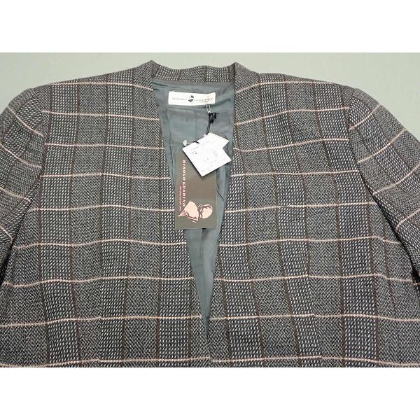 ヒロココシノのノーカラージャケットです。肩パット入り、1ボタンでやや丈が長めのデザインです。素敵にお使い頂けると思います。気になる方は是非ご検討下さい。