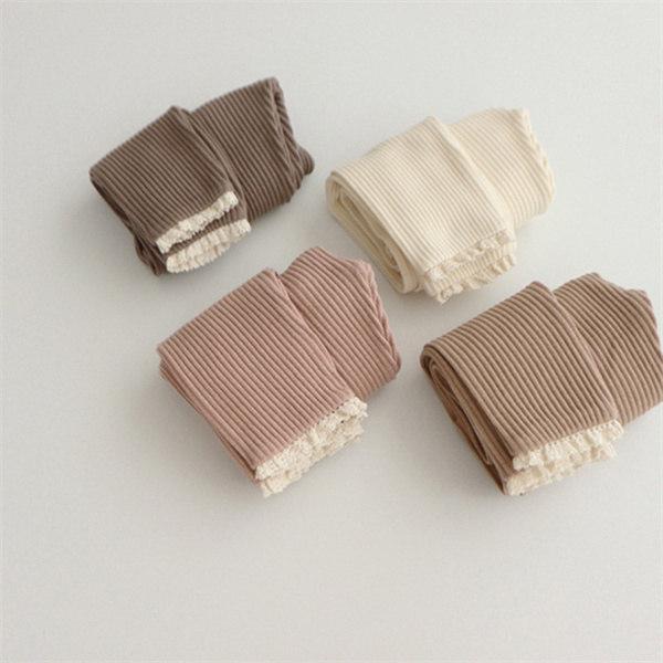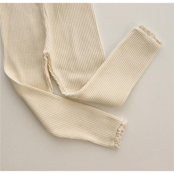 ベビー リブ レギンス 裾レース 女の子 男の子 秋 冬 60 70 80 90 100 スパッツ ストレッチ 伸縮性 長ズボン ロングパンツ くすみカラー レギパン 赤ちゃん