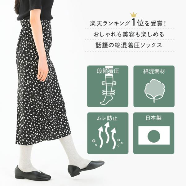 ハイソックス 着圧 綿混 美脚 引き締め
