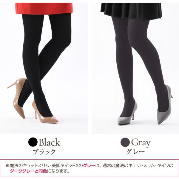 ・通常版の魔法のキュットスリム・タイツとデニール数、編み方が違いますため、肌触りに違いがございます。予めご了承ください。