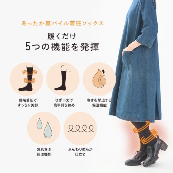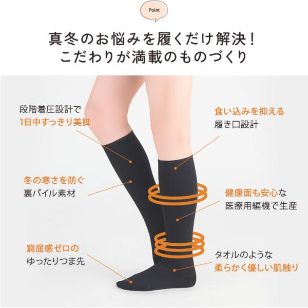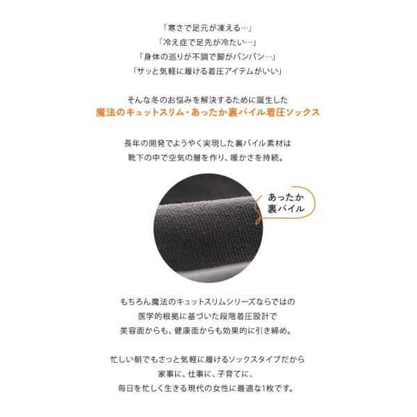 着圧ソックス 裏パイル 靴下 温活 冷え対策【魔法のキュットスリム・あったか裏パイル着圧ソックス】