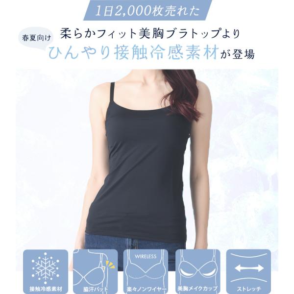 接触冷感 ひんやり 涼しい ブラキャミ ブラトップ カップ付きインナー【涼感スムース美胸ブラトップ(接触冷感素材)】