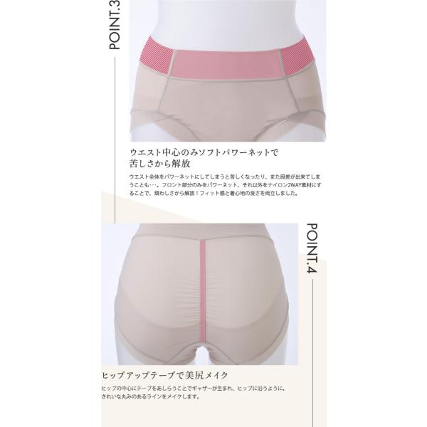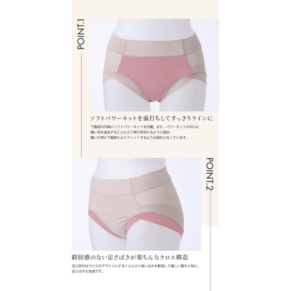 スタンダードなショーツに裏打ちパワーネットをプラス。よりフィットするように仕上げました。