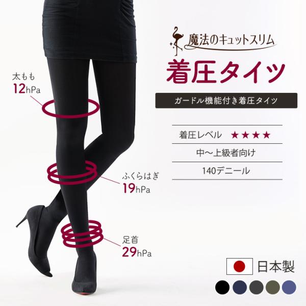 着圧タイツ 医療用 暖かい レディース 日本製 140デニール すっきり 引き締め 段階着圧 弾性タイツ【魔法のキュットスリム・タイツ】