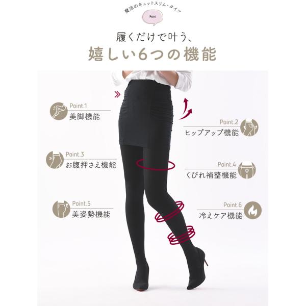 心地よいフィット感を、ぜひ体感してください。オフィスから普段使いまで活躍する着圧タイツです
