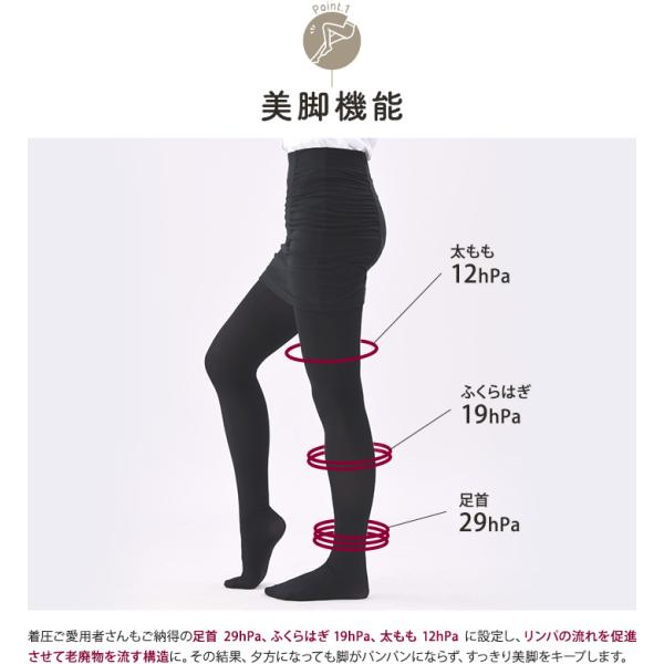 計算された段階的な引き締めで、履いた瞬間からスッキリとした美脚ラインを演出。