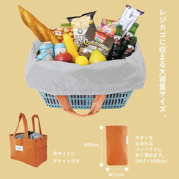レジカゴのサイズにぴったりのショッピングバッグ。保冷もできてとっても便利。 両サイドのボタンを留めれば、コンパクトに折りたため持ち運びもスマートです。内側には保冷剤を入れる便利なメッシュポケット(縦11cm × 横15cm)が付いています。キャンプやアウトドア、ピクニックや運動会などレジャーバッグとしておすすめです。