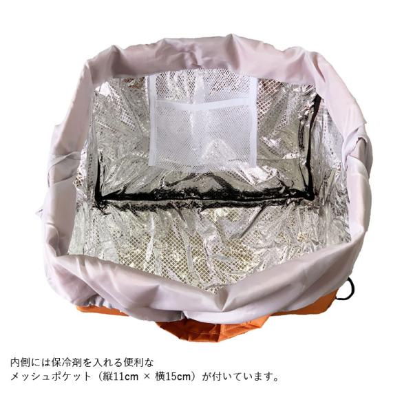 素材:ポリエステル(表生地・メッシュ生地・巾着部分)/アルミ(巾着部分)
