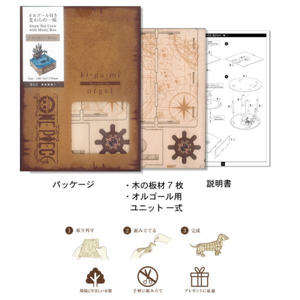 ki-gu-mi ワンピース オルゴール付き 麦わらの一味 木製 立体パズル 3D 組み立てパズル Wooden Art 正規販売