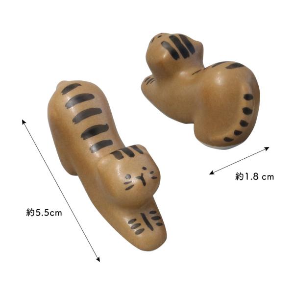 伸びをしているポーズの猫の箸置。正面のおすまし顔も
