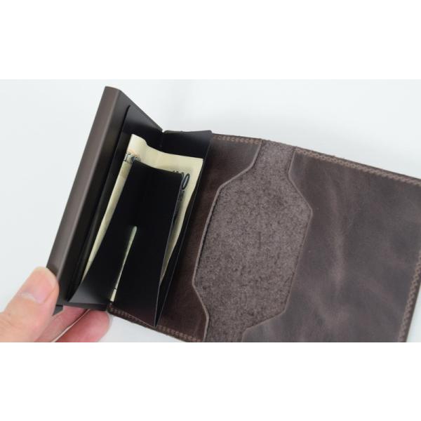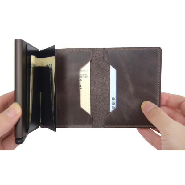 カードをスライド式で素早く取り出せる機能に加え、カードポケットやお札入れを備えたカード優先設計です。