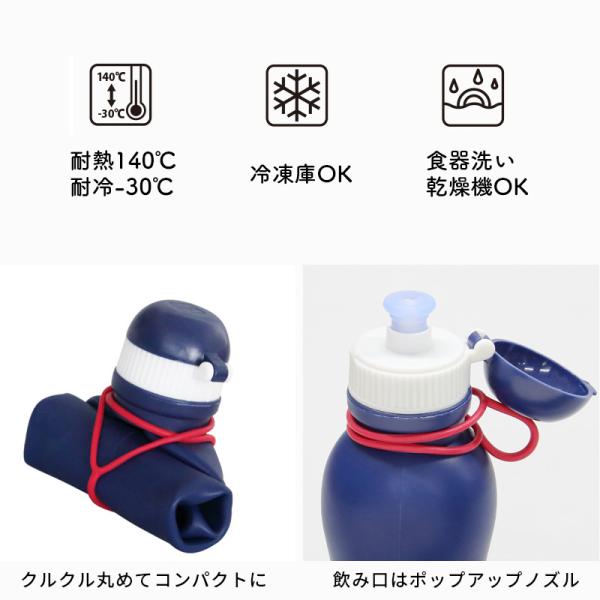 飲み終わったらクルクル丸めて、コンパクトに収納できるシリコーンボトルです。スポーツやアウトドアシーンにもぴったりな、ビビッドなカラーリングのPOP なデザインです。歩きながらゴクゴク飲めるポップアップノズルタイプ。くびれがあり持ちやすい形状もポイント。