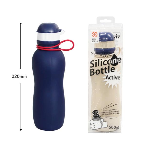 シリコーンボトルアクティブ 500ml viv ヴィブ シリコンボトル 折りたたみ水筒 グッドデザイン アウトドア 持ち運び 食洗器OK 冷凍庫OK