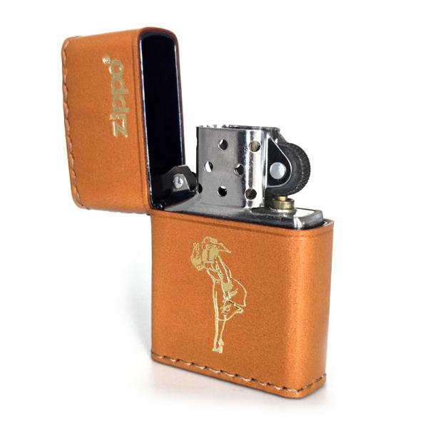 職人の手で丁寧に巻き上げた牛革に、ZIPPOロゴとウィンディを箔押し(金・銀)で施したクラシカルなZIPPOライター。