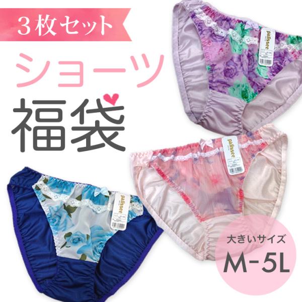 ショーツ 大きいサイズ レディース 福袋 3枚セット パンティ スタンダード トリコット M L LL 3L 4L 5L きれいめ ノーマル