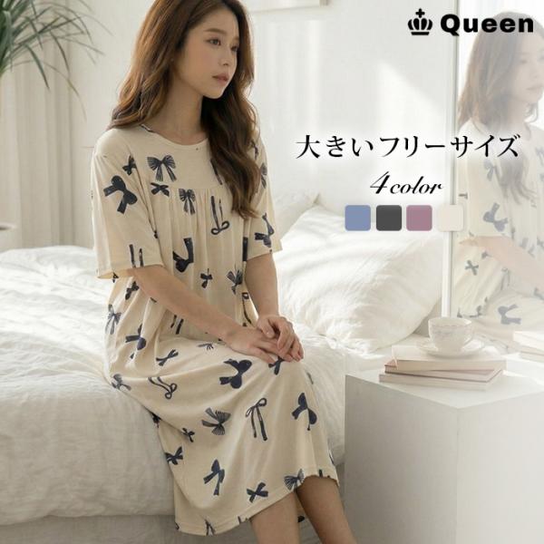 ルームウェア ネグリジェ ナイトウェア パジャマ ワンピース リボン ロング丈 ゆったり 部屋着 大きいサイズ レディース LL 3L 4L 5L 6L