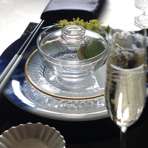 ガラス食器 青山硝子 丸型 和食器 和モダン おもてなし おしゃれ 切子模様 プレート 中皿 取皿 業務用