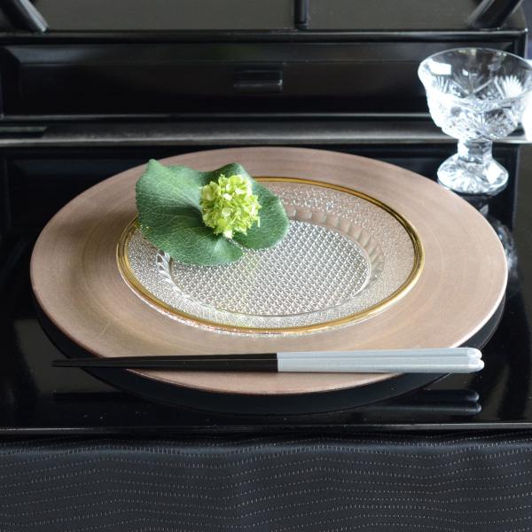 香菊 丸皿 天金 KM-K9G【ガラス食器 青山硝子 丸型 和食器 和モダン おもてなし おしゃれ 切子模様】