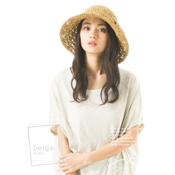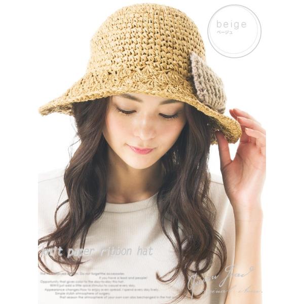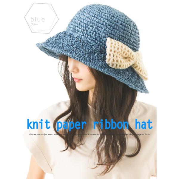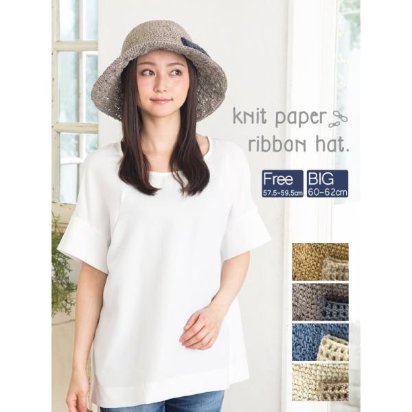 帽子 レディース UV 大きいサイズ 麦わら 折りたたみ 自転車 ニットペーパーリボンハット つば広ハット 春 夏 母の日 SALE セール