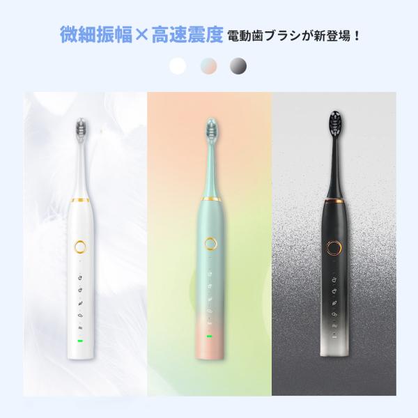 電動歯ブラシ 音波歯ブラシ 5本替えブラシ 歯ブラシ 38000回転/分 USB充電式 IPX7防水 5つのモード 充電スタンド付き 携帯便利
