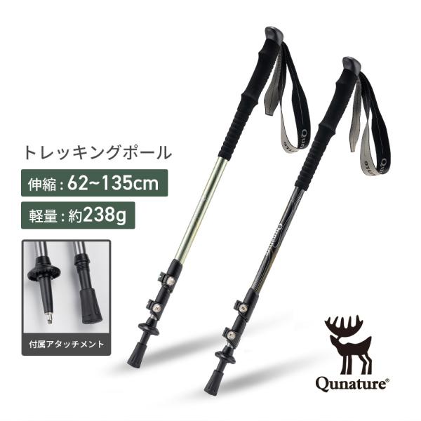 トレッキングポール 伸縮 1本のみ ストック 登山杖 ハイキング トレッキング ユニセックス ストレート I字ハンドル I型ハンドル Qunature