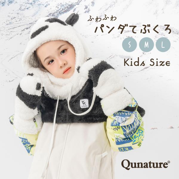 子ども用 手袋 パンダ ふわふわ 耳付き 手ぶくろ グローブ フリース 防寒 保温 スキー スノボ アウトドア Qunature