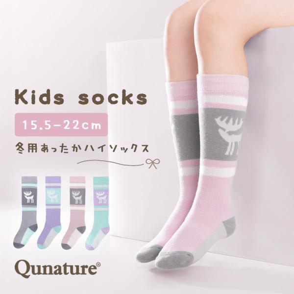 子ども用 ソックス キッズ スキー スノボ かわいい 靴下 ウール混 ハイソックス 防寒 暖かい 冬用 厚手 アウトドア 登山 Qunature