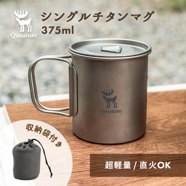 チタンカップ アウトドア食器 クッカー 直火OK 375ml シングルウォール構造 フタ付き 収納袋付き 折り畳み式 Qunature
