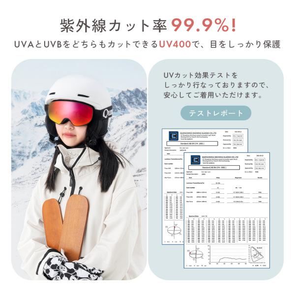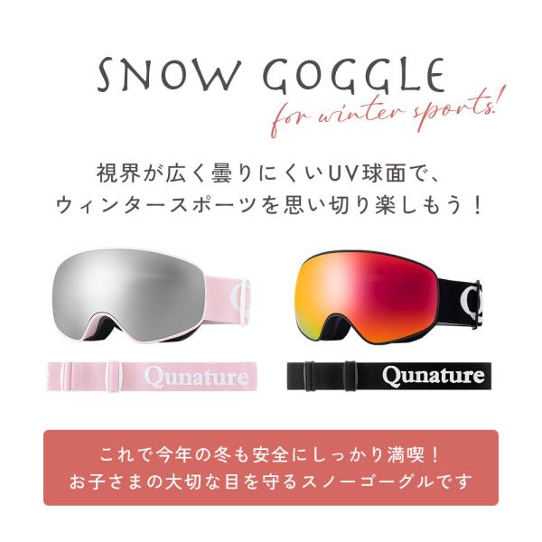 スキー スノーボード ゴーグル キッズ ミラー 球面 ダブルレンズ HDレンズ UVカット 子ども用 防傷 Qunature