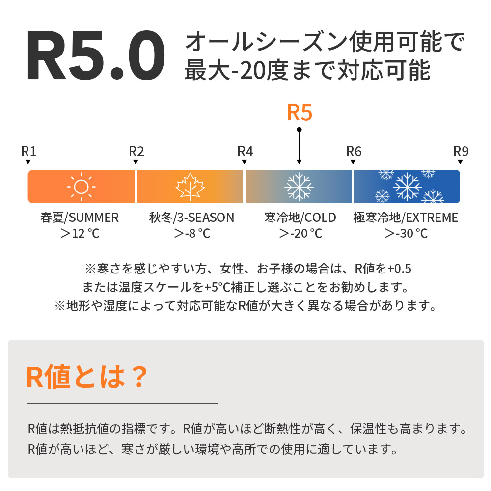 ・R値5.0の高断熱性能で、-20℃の極寒地でも快適に使用可能