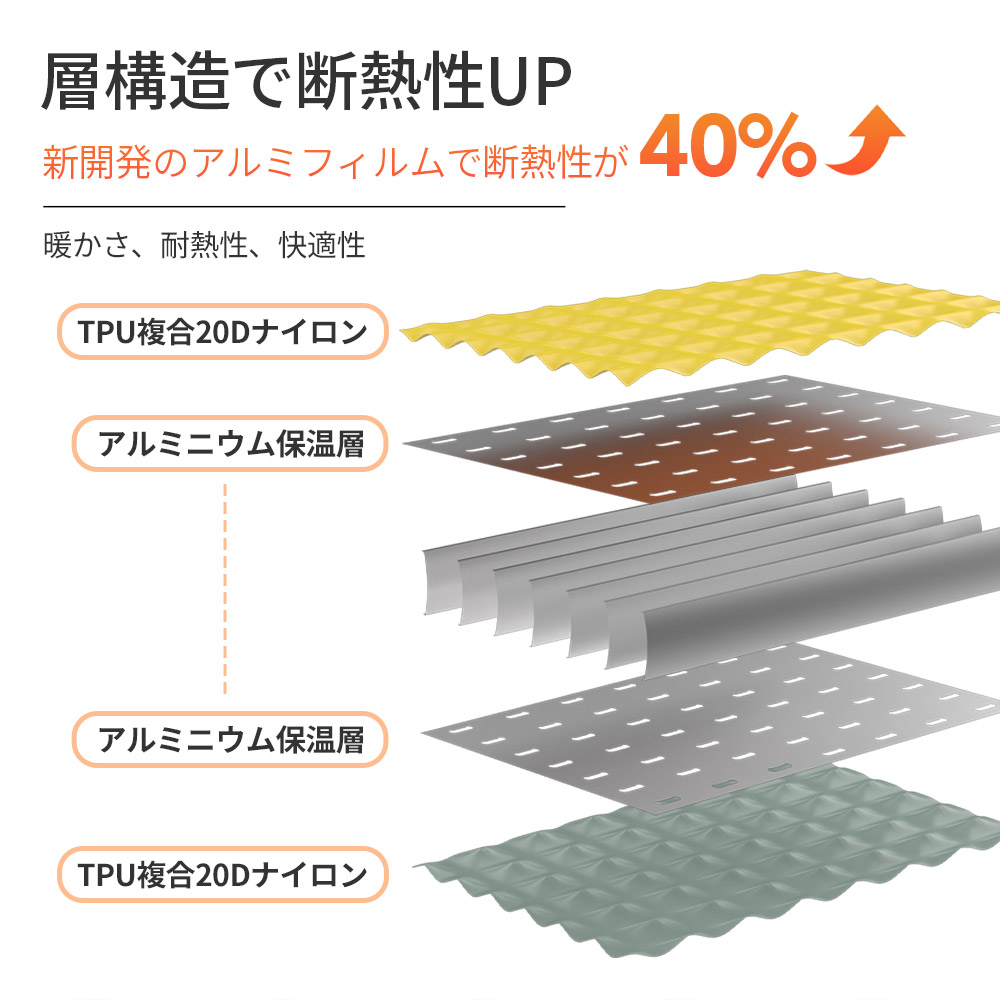・断熱性40%向上!二層のアルミフィルムが地面からの冷気を強力に遮断