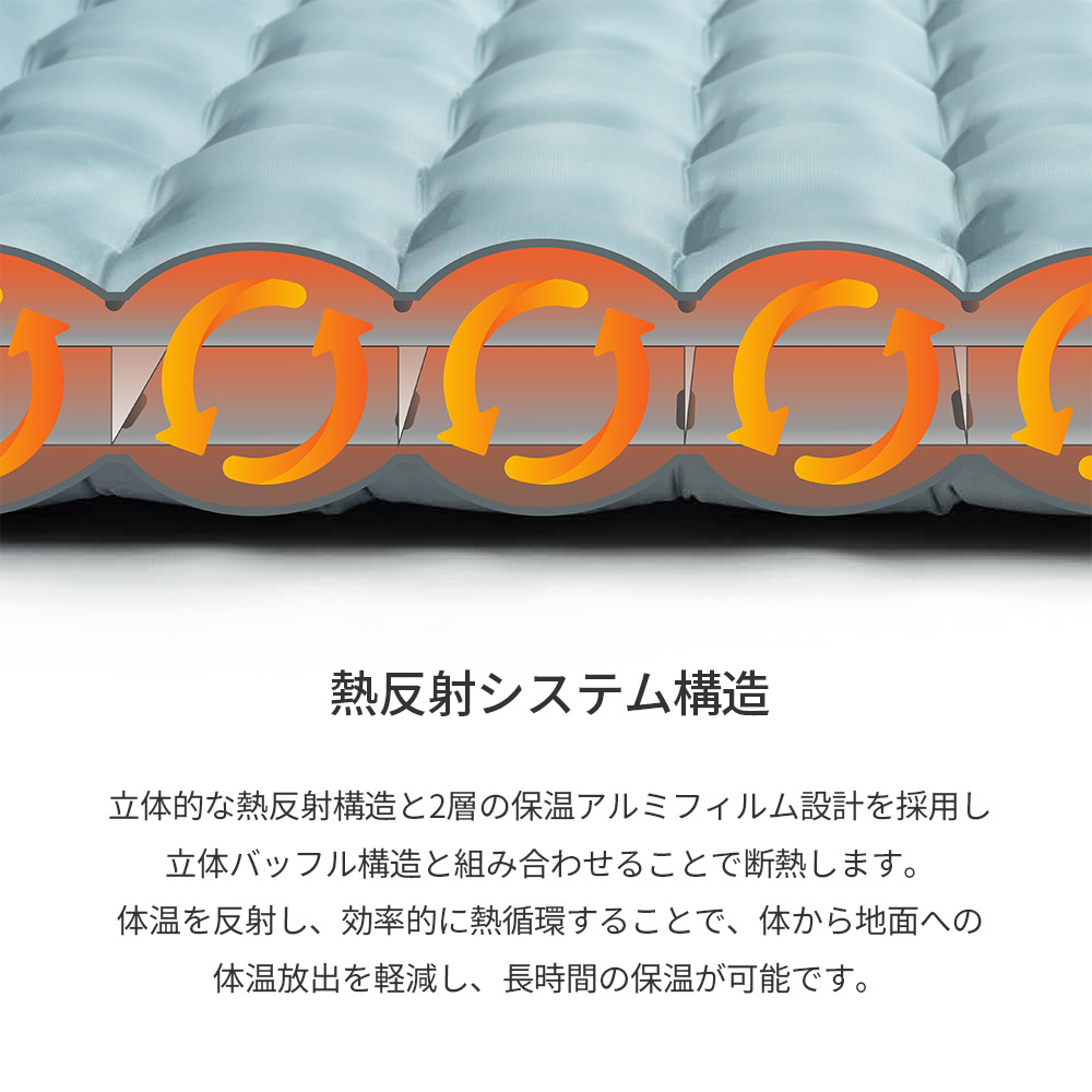 ・体温を反射・循環させる熱反射システム構造で長時間の保温が可能