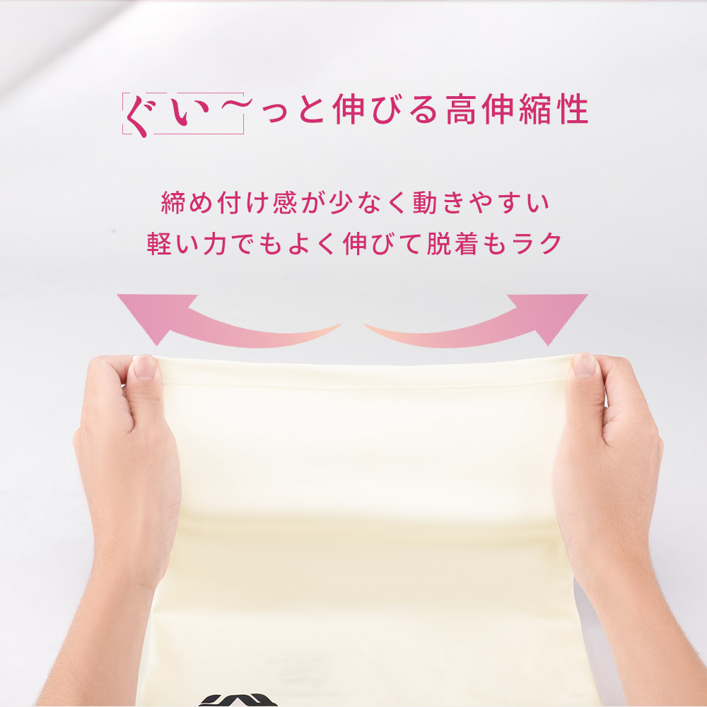 高伸縮性で締め付け感も少なく、着脱も楽々