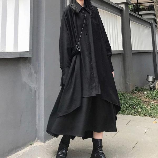 個性的 シャツ 個性的スカート モード系ファッション 不規則 長袖 ミモレ丈 イベント オフ会 コスプレ ステージ衣装 10代 20代 30代 40代 50代