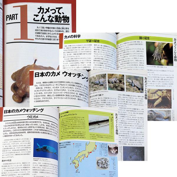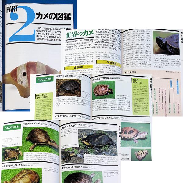 世界のカメ124種を生息分布、大きさ、主な特徴などをカラー写真付きで紹介したほか、上手なカメの飼い方などカメに関する情報が満載。
