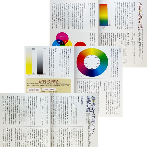 色の名前事典。JIS規格の269色を含む伝統の色から身近な色まで、色見本とともに色名の由来、特色、逸話などを紹介。見てわかり、読んで楽しい色の辞典。