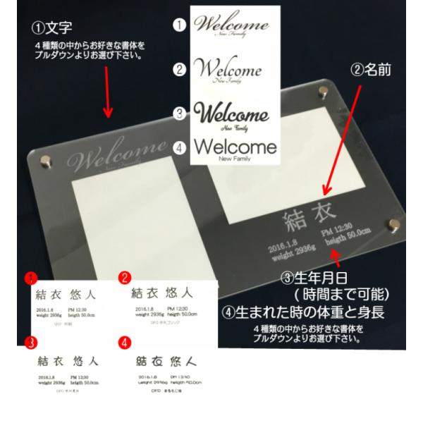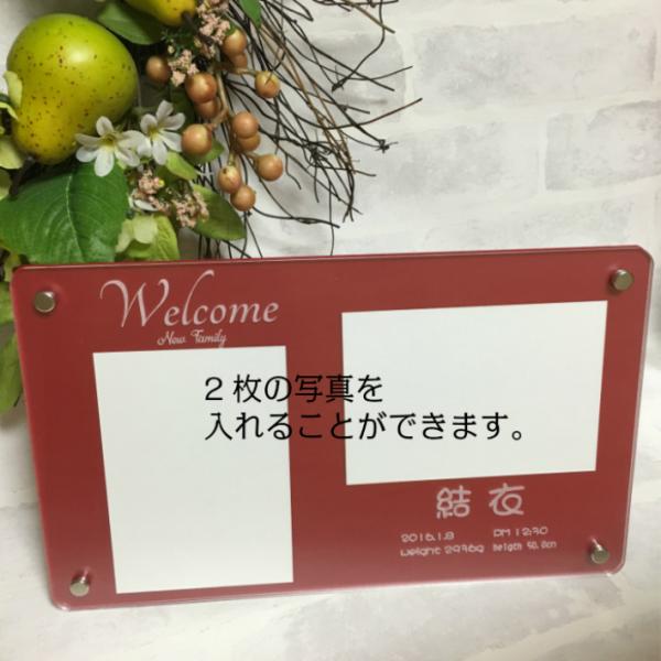 フォトフレーム 写真立て 2枚 名入れ 文字入れ プレート 出産祝い ギフト プレゼント 縦型 横型 出産 入園 入学 アクリル 名前 身長 体重 生年月日