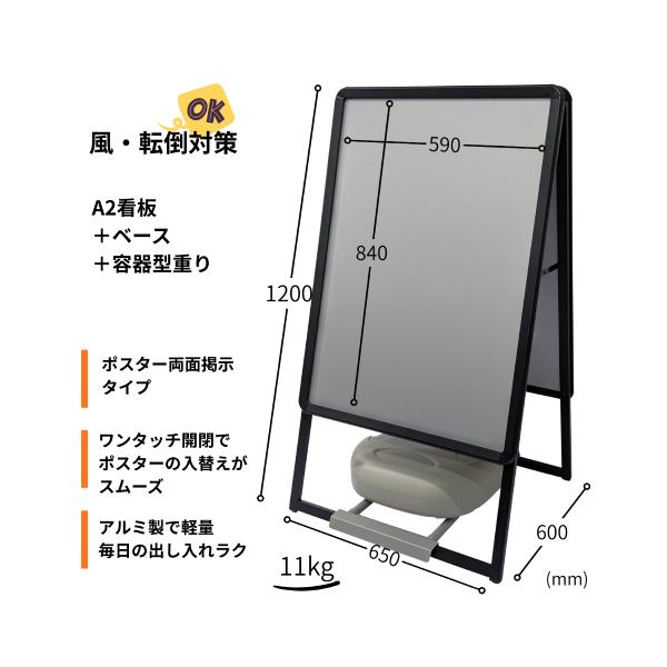 A型看板ブラック A1 サイズ タンク型重し+ベースセット
