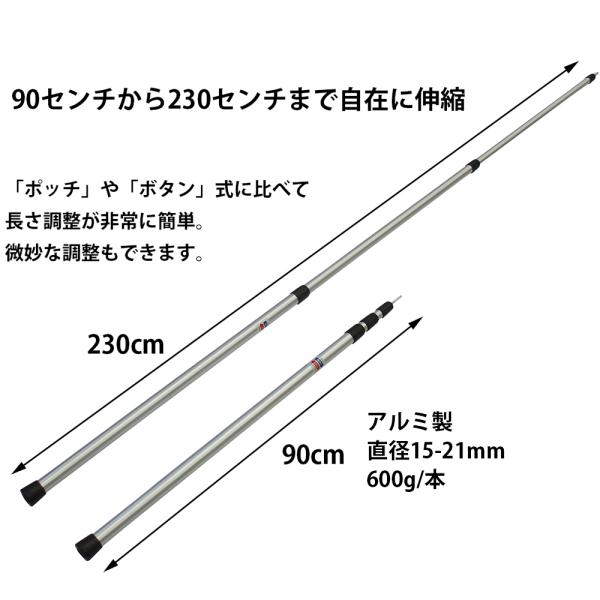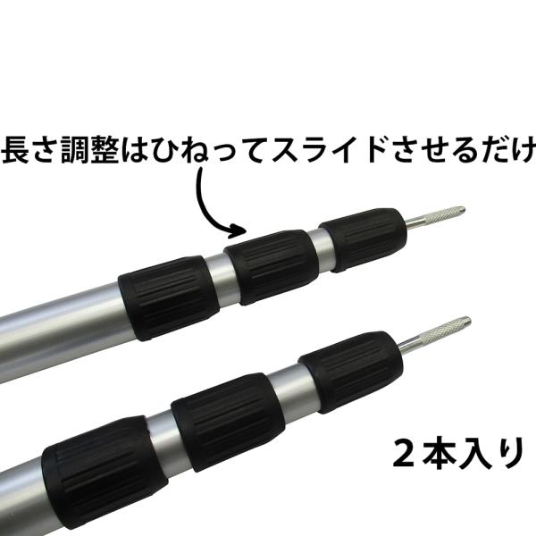 テントポール シルバー 2本セット 90から230cm 高さ無段階調整可能 テント タープ アルミ製 スライド式 伸縮式 2股