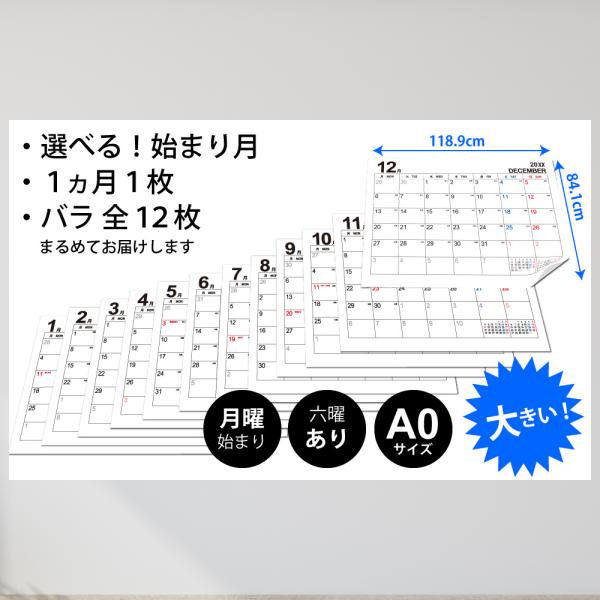 2026 - 2027 開始月を選べる カレンダー たくさん書き込める A0サイズ 店舗用 業務用 スローガン Hotdogger