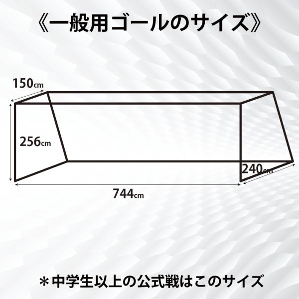 一般用(7M)ゴールポスト適合サイズ:幅744cm, 高さ256cm, 天井奥行き150cm, 地面奥行き240cm